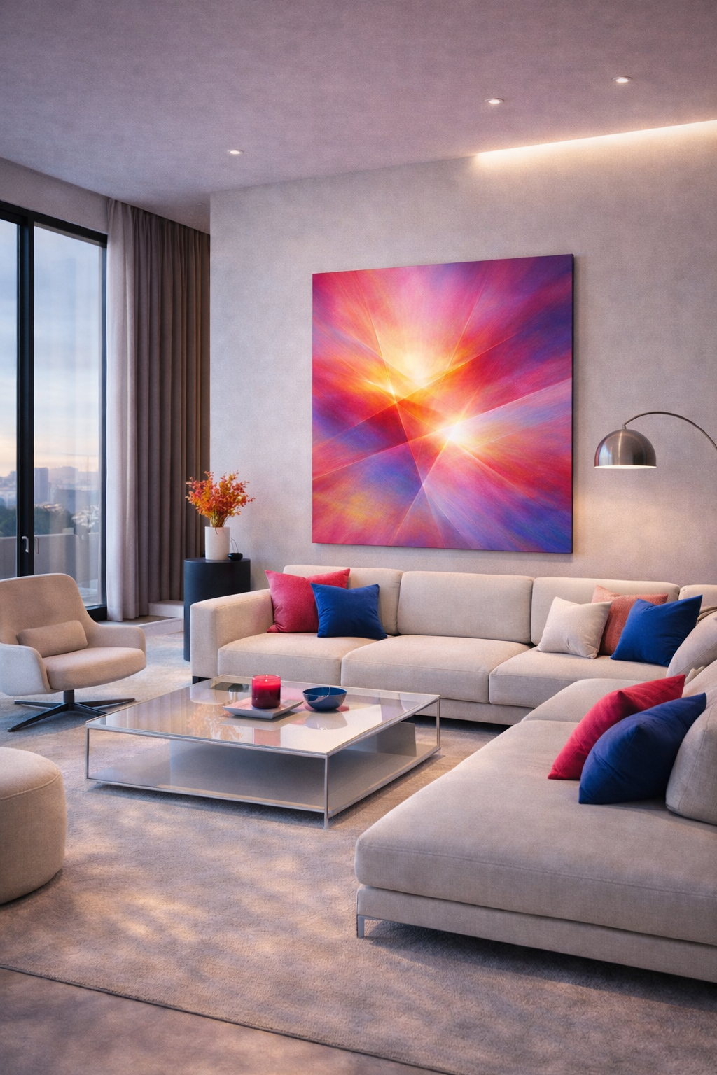 Luminous Study I: Still Morning explores light as a feeling rather than a place. Soft warmth radiates outward, creating a sense of calm, openness, and quiet optimism. The palette is intentionally restrained, allowing warmth and colour to exist without overpowering the space it inhabits.